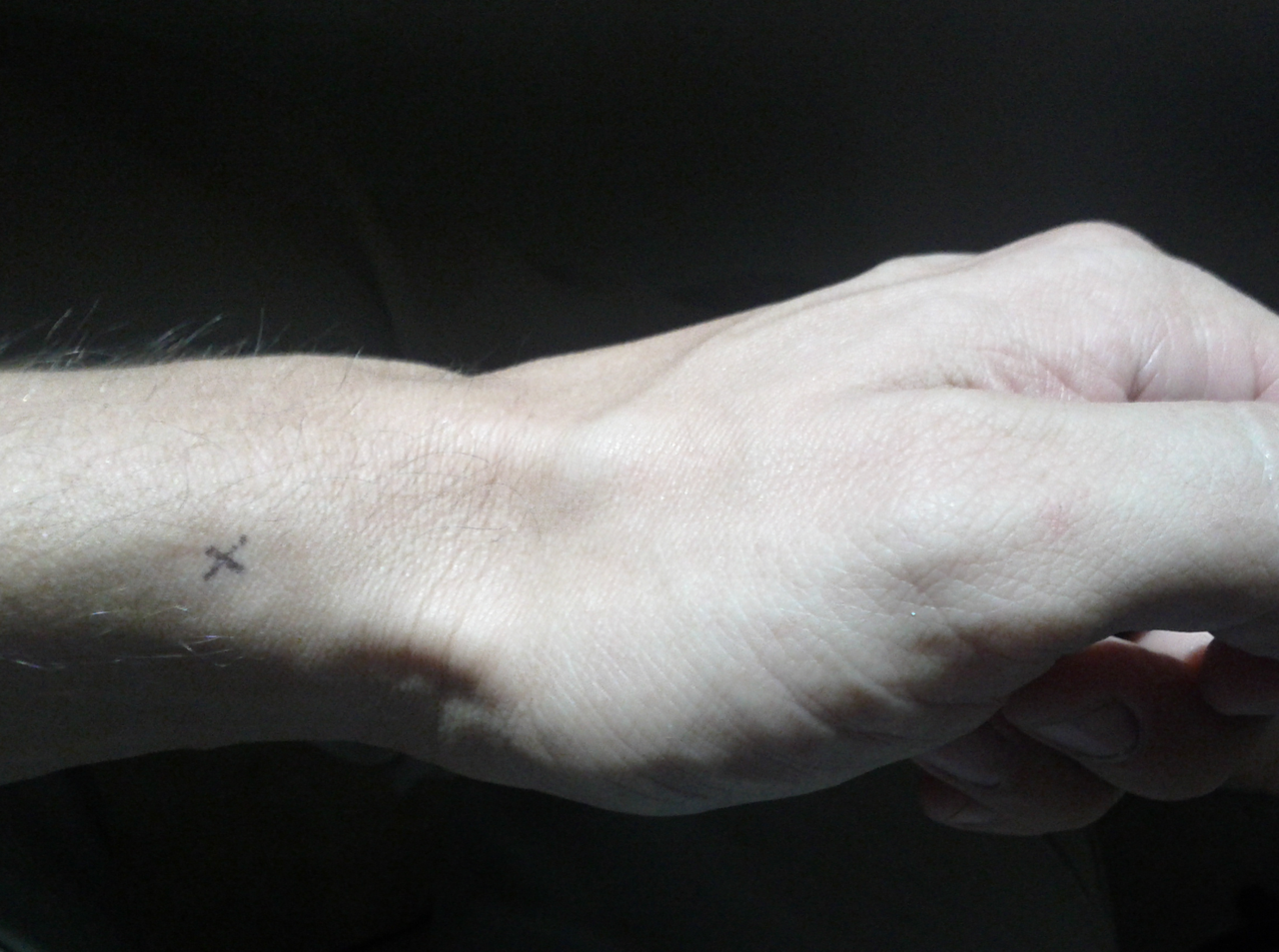 Lung 7 is a good point for well, the lung. It is a great point for cold or cough of just about any cause. It is on the wrist on the radial side (thumb side), about an inch or so (technically 1.5 thumb widths by the TCM description) from that little hollow at the base of the thumb between the two tendons. Sorry, no extra-creepy Gray’s anatomy plate for this one. Apparently Dr. Gray thought people only needed to see the hand and forearm from the top and bottom. Either way, my hand with an “x” scrawled on it in pen should suffice. The cool thing about Lung 7 is that is pairs with our next point to really open up the chest and get things moving.